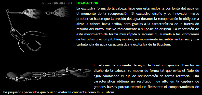 O conceito de captura de grandes bass, o spinnerbait Bcustom tem um poder sem precedentes em termos de captura de Bass mais de três quilos. O excelente desempenho demonstrado até agora são reflectidos nas capturas de vários basses enormes, e a reputação universal de um spinnerbait que nunca deve faltar para capturar grandes Predadores. Estes resultados vêm de um estudo perfeita e completa sobre a capacidade de manobra, resistência, capacidade de longa distância (castability) e a eficácia em atrair e induzir monstros . A medição dos bass aumenta a cada ano, mas essa atracção é sempre ideal para capturar os maiores. O resultado do BCustom é sustentado pela opinião unânime dos pescadores especializados na captura dos grandes baixos. Este spinnerbait, que foi projetado expressamente para os grandes baixos, certamente continuará a capturar baixos de dimensões gigantescas.