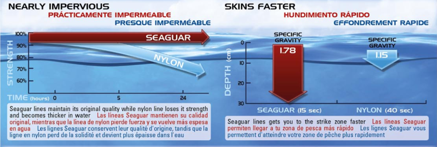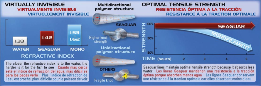 SEAGUAR FINAL LINE, com a tecnologia mais avançada, graças ao fato de as cadeias poliméricas de fluorcarbono Seaguar serem orientadas em todas as direções, tornando o Seaguar único em sua estrutura, garantindo mais invisibilidade e mais resistência , mais suave, mais leve e agora com a FINAL LINE, o único fluorcarbono 100% elástico. Feito com tecnologia de precisão exaustiva, ideal para montagens na pesca de competição, seja em terra ou em barco.