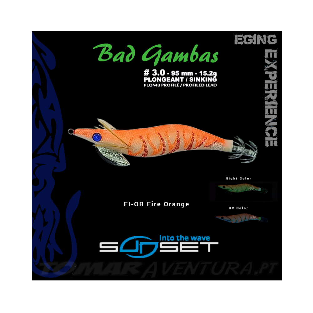 Os Squid jigs SUNSET SUNSQUID BAD GAMBAS têm um corpo fosforescente coberto por um tecido iridescente ultra-resistente. Projetado para ser lançado e trazido de volta usando a técnica japonesa de "bichi bachi" que consiste em dar golpes pequenos, agudos e rápidos de cima para baixo. Não há dúvida de que o SUNSET SUNSQUID BAD GAMBAS provocará ataques das lulas ou chocos mais suspeitos!