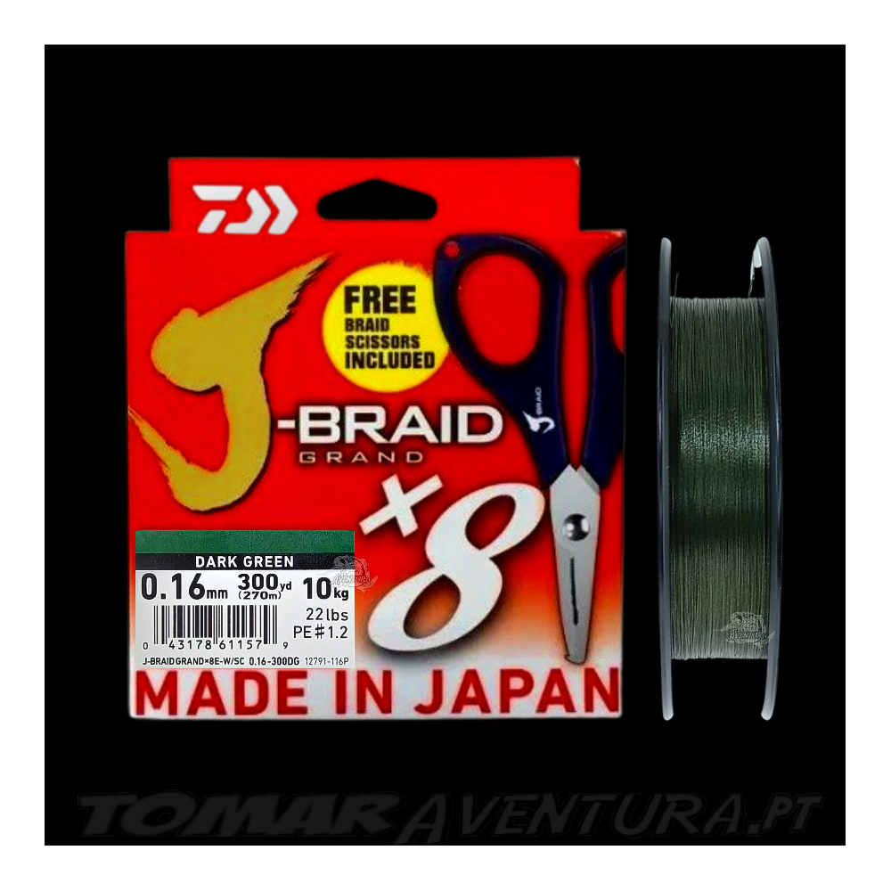 Linha Daiwa J-Braid Grand x8 Dark Green 270m + Braid Scissors