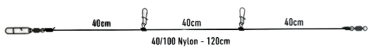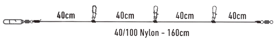 Líder dedicado à pesca de cefalópodes com squid jigs. É equipado com três clipes montados em nós, com espaçamento de 40cm, oferecendo grande liberdade para squid jigs. Uma montagem por embalagem.