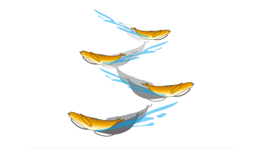 O formato suave e fluido do corpo cria uma baixa resistência à água, facilitando a execução de movimentos rápidos e precisos e alargando a área de deslizamento inercial. Permite também movimentos rápidos e precisos, enganando o predador e provocando ataques por reflexo, mesmo em águas abertas.