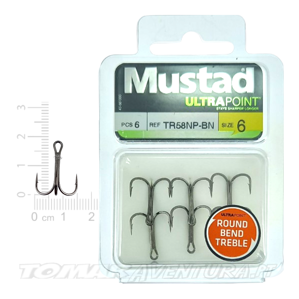 Mustad Round Bend Treble Hook TR58NP-BN