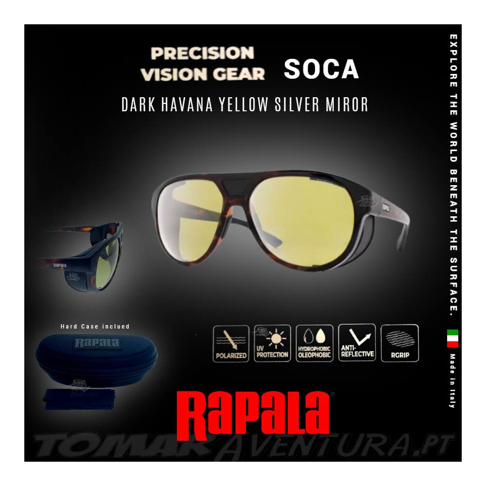 Lunettes de soleil polarisées Rapala PRECISION SOCA DARK HAVANA YELLOW SILVER MIROR