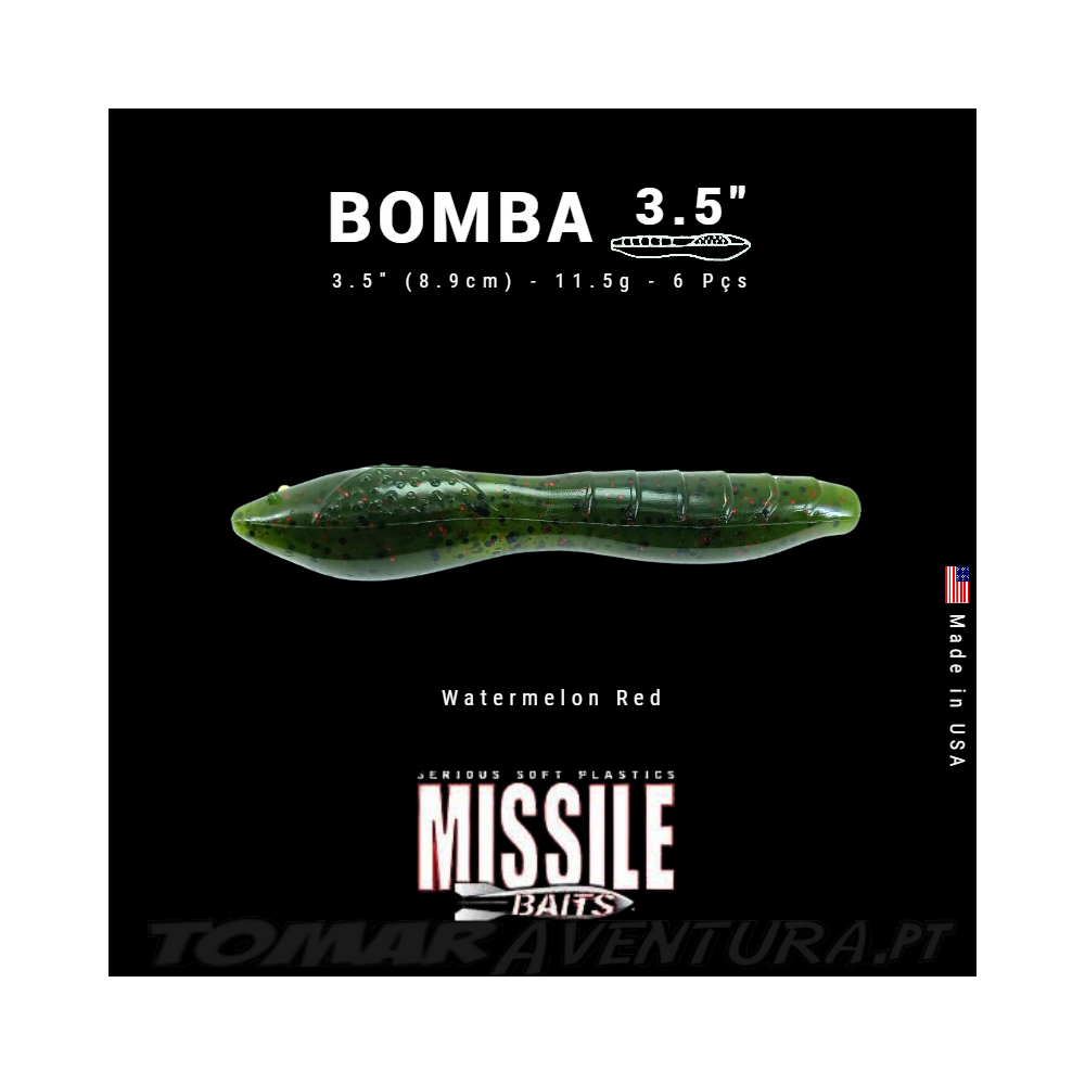 O Bomba 3.5 é um verme, grosso e rastejante que lança e salta como um foguete. Pense na combinação de Ned Rig e Senko. A isca se parece visualmente com um lagostim sem apêndices e tem uma ranhura para anzol na barriga para facilitar o lançamento do anzol. A Bomba 3.5 é principalmente montado a Texas, equipado sem peso para cair erraticamente no fundo enquanto desliza, balança e até mesmo se afasta. Muitas outras técnicas de captura de bass podem ser usadas com a Bomba, como Neko Rig, Ned Rig, Texas Rig e muito mais. A Bomba 3.5 virá tem 6 unidades por saco. utilize o Bomba 3.5 quando precisar de sutileza, mas ainda quiser um isco fácil de lançar.