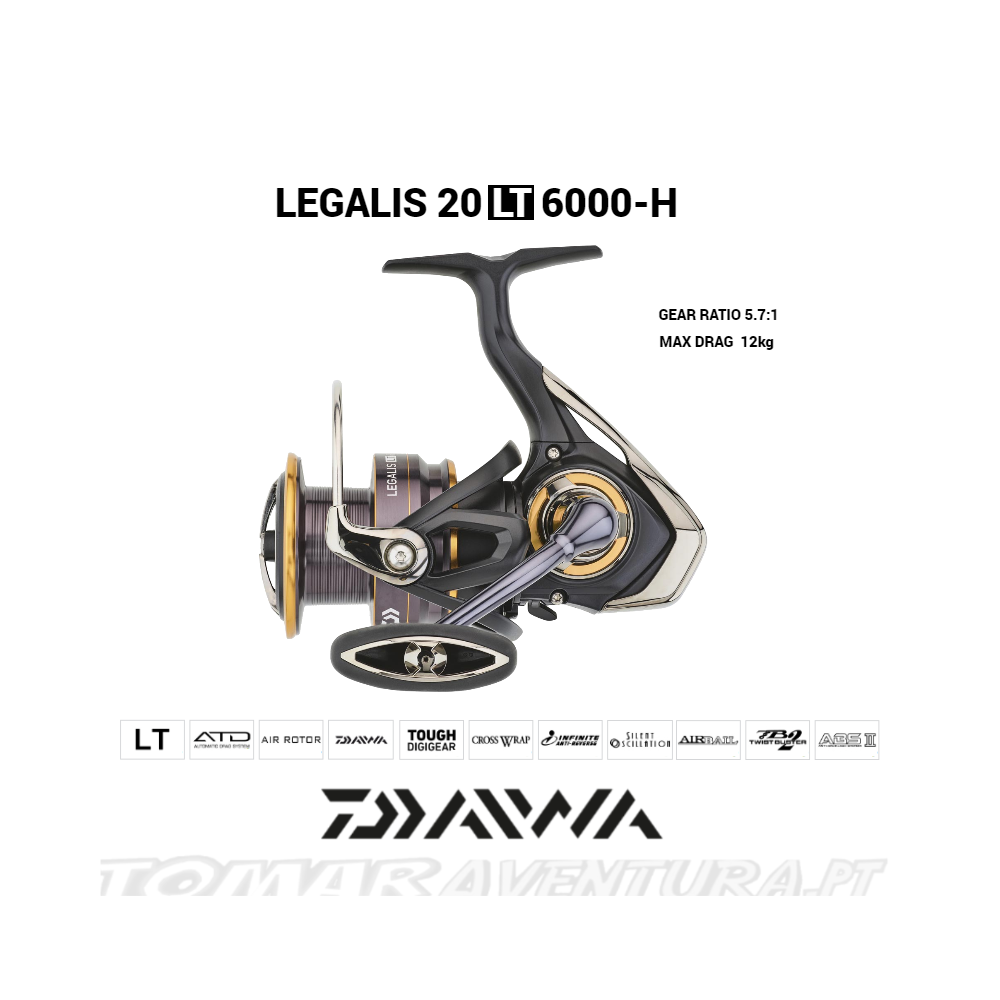 Os carretos Legalis apresentam uma gama completa de tamanhos 1000 a 6000. Equipados com o Air Rotor em forma de arco em carbono Zaion V, ainda mais sólido dispõem de uma rotação fluida. O drag de última geração ATD torna possível dominar os combates desde o toque até à colocação em seco. O corpo compacto em carbono Zaion V e a robusta roda de coroa Tough Digigear fazem do Legalis LT 2020 um carreto com uma excecional relação leveza-resistência, tudo a um preço muito atraente!