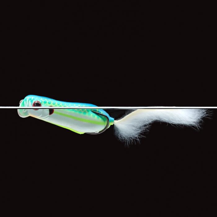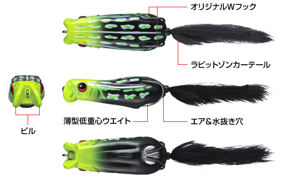 O novo tipo de isca de Morizo Shimizu que combina a capacidade avassaladora de coletar peixes com o giro rápido x cuspe e bolha de "Shower Brows" com o desempenho sem protuberâncias e emaranhado de água suave de "Frog".