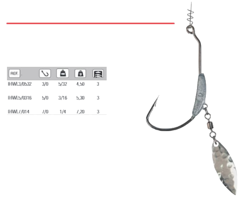 Anzol de alta qualidade com chumbo na aste. Especialmente desenvolvido para equilibrar os vinis na ação de pesca. Lâmina traseira que gera vibrações extras muito atraentes.