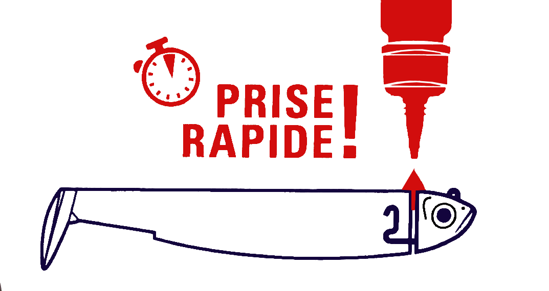 Colocar no cabeçote do jig com o corpo da amostra aumenta a resistência e melhora a ação da amostra na água. A cola foi desenvolvida especificamente para iscos de plástico macio.