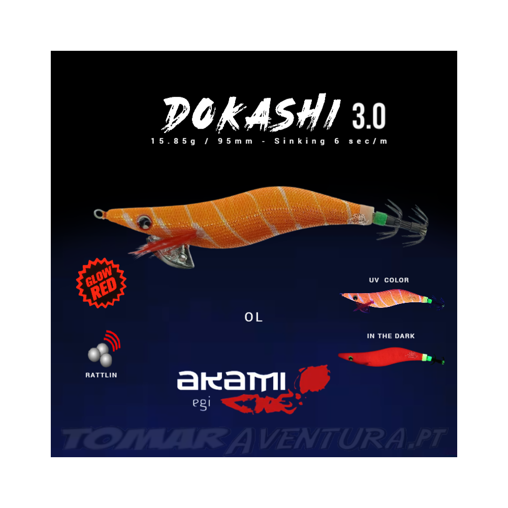 Provavelmente este palhaço vai ser o eleito na sua próxima pescaria: com o seu padrão de cor especial, o novo DOKASHI tem pintado no seu corpo colorido tiras de cor branca que dentro de água criam um efeito visual incrível, como se de uma presa real em fuga se tratasse, precipitando por impulso o predador no seu encalço! Como é habitual, na gama AKAMI, o DOKASHI tem um tecido de alta qualidade muito resistente, sensorial e térmico; a textura da sua cobertura têm um efeito escamoso e as suas cores com tratamentos UV tornam-se mais visíveis em águas mais escuras bem como o seu corpo, que é de uma alta fosforescência avermelhada! Este palhaço vem equipado com olhos 3D, anzóis de qualidade em aço de alta têmpera com elevado poder de penetração e grande nível de resistência revestidas a teflon. O seu formato apresenta-se mais fluído e realista e com um equilibro quase perfeito.