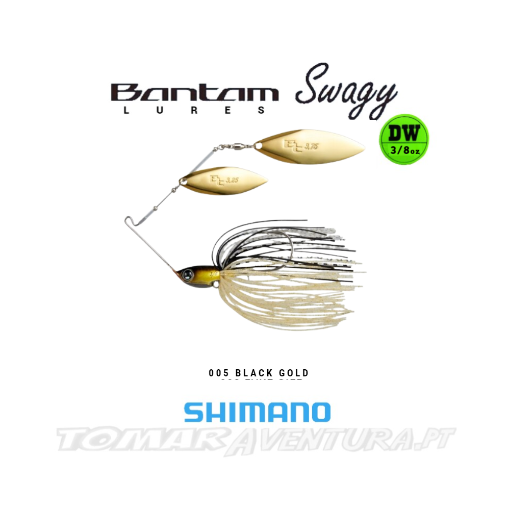 Especificações de lâmina dedicada com uma leve elevação, leve resistência á recuperação. Resistência e vibração. A aste grossa torna difícil transmitir a vibração da lâmina para o corpo. O Bt Spinnerbait Swagey resolve esse dilema. O braço Bt processado torna o antebraço com um diâmetro de 0,95 mm resistente e difícil de deformar. O braço de 0,6 mm de diâmetro transmite a vibração da lâmina para todo o corpo, dando à saia uma ação brilhante. O estanho e o tungstênio são usados para a cabeça. Ao concentrar o tungstênio, que possui alta densidade específica, na superfície do fundo, estabiliza a natação mesmo em altas velocidades, como ringing e buzzing, e ao redor das coberturas, reduz prisões pela rápida subida após evitar obstáculos. Esse design é aprimorado ainda mais pela construção da cabeça, que é feita de uma combinação de estanho leve na parte superior e tungstênio mais pesado na parte inferior. Isso melhora a estabilidade de recuperação e retorna o Bantam Swagy DW para a posição correta rapidamente após bater em obstruções subaquáticas.