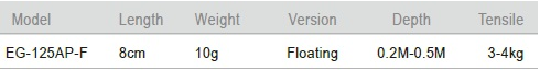Uma hélice foi desenvolvida especificamente para esta amostra, não apenas porque é única e assimétrica, mas também devido ao som que faz quando a isca está flutuando e à capacidade de criar salpicos. Quanto à isca, o corpo tem a forma da maioria dos peixes predadores. A estrutura interna foi completamente revisada e actualizada. Esta isca é bem adequada para capturar todos os peixes predadores.