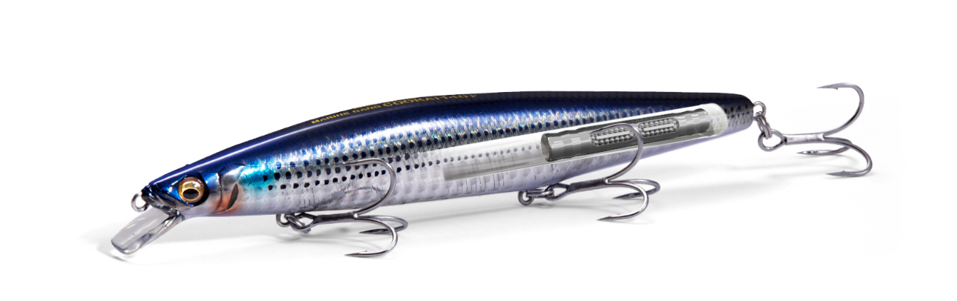 ■Assim que a recuperação começa, o balanceador é instantaneamente guiado para a posição de ação apropriada pelo campo magnético de neodímio e travado. A velocidade avassaladora da natação expande bastante a zona de rastreamento efetiva e induz instantaneamente uma mordida no ponto de aterrissagem. Mesmo em correntes fortes e ondas agitadas, o isco não se move descontroladamente e nada em águas agitadas com uma ação excepcional e estabilidade extremamente alta.