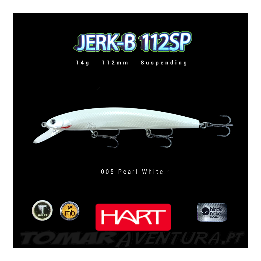 Jerk bait Suspending, grande capacidade de lançamento, com esferas de Tungstenio internamente que simultaneamente produzem sons intensos de grande capaçidade atractiva e movimentação super natural. Na ação de pesca tem um movimento muito realista: rolamento fechado muito eficaz em recuperações lineares, e manuseio extraordinário com arranques leves acompanhados de breves pausas de 2 ou 3 segundos. Graças a esse movimento peculiar, o isco mostra os flancos e gera um brilho que produz um efeito instantâneo sobre os predadores.