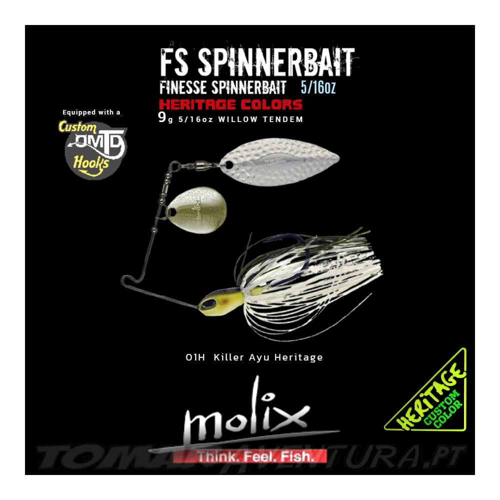 Uma apresentação compacta e elegante para aqueles momentos em que a pressão da pesca é elevada ou a água está extremamente limpa, o Molix FS Spinnerbait apresenta lâminas de alumínio de qualidade especial extra leves que começam a piscar e a vibrar no momento em que atingem a água. O design da sua cabeça mais larga também lhe confere uma ação de movimento diferente de qualquer outro spinnerbait do mercado, o que o ajuda a desencadear ataques dos peixes mais exigentes. Equipado também com uma saia de silicone de corte ultrafino para uma ação mais realista e natural.