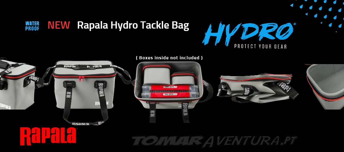 A bolsa Hydro Tackle Bag foi concebida para o pescador que está sempre em movimento. Possui: corpo com 1 mm de espessura, fundo com 1,5 mm de espessura, tampa com 0,85 mm de espessura, design dobrável, alça de ombro amovível, fecho reforçado à prova de ferrugem e capacidade para cinco caixas de pesca tamanho 3700 (Não incluidas).