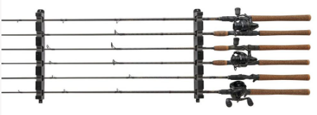 O rack de haste horizontal Berkley® economiza espaço enquanto armazena de forma organizada e segura até 4 ou 6 combos completos de haste e molinete.