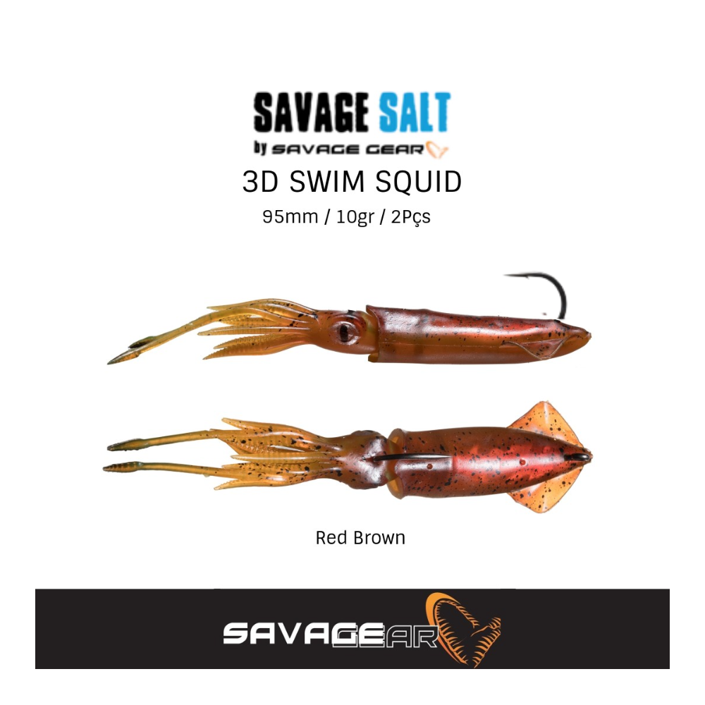 Baseado numa imitação 3D de um verdadeira lula, com detalhes soberbos e um perfil super realista! A amostra nada e parece-se com uma lula real e vai enganar até mesmo os peixes predadores mais cautelosos para atacá-la! O Squid Lula Swim, pode ser usado de várias maneiras, lançar e recuperar, jigging lento ou trolling! O design exclusivo de duas partes, permite que o pescador adicione um atractivo de lula noseu interior ou troque o equipamento conforme necessário. As barbatanas do corpo pulsam e os tentáculos vibram vivamente à medida que a amostra se move através da água, o que faz uma imitação perfeita de uma lula!